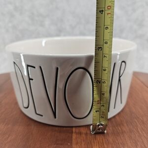 Rae Dunn Magenta DEVOUR Pet Bowl Dog Cat White Etched Black Stoneware 6x2.75"
