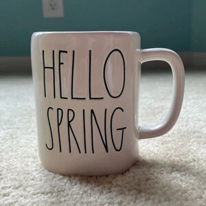 Rae Dunn Magenta Glossy White “HELLO SPRING” Mug w/ Green Inside - EUC