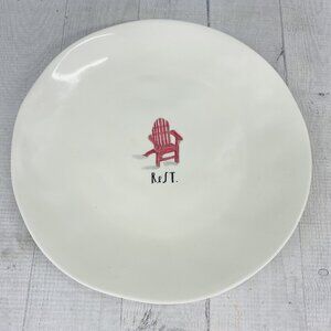 Rae Dunn Magenta SIT AND RELAX Red Beach Chairs Word Melamine Dinner Plate Set 5