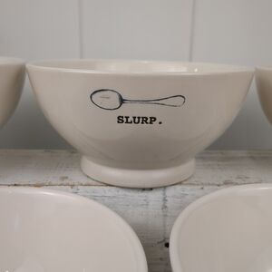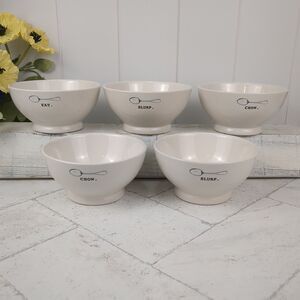 Rae Dunn Magenta White Ceramic Bowls Spoon Farmhouse Kitchen Decor Set of 5