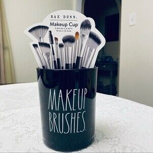 New Rae Dunn MakeUp Brushes Cup Organizer (Larger Size), Size OS Black White