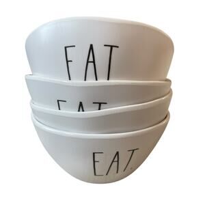 Rae Dunn Melamine EAT Salad Bowls 6in Set of 4 Black White