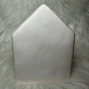 Enhance your home decor with this charming white ceramic house-shaped clock. Featuring elegant red accents, it's a perfect blend of style and functionality. Not sure if it works, battery is needed.