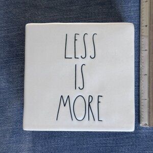 This Rae Dunn 4 inch x 4 inch decorative block is in like new condition. "More Or Less" on one side, "Less is More" on the other side.