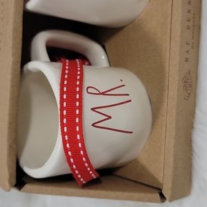 Rae Dunn Mr. & Mrs. Ceramic Mug Ornaments Set of 2. NWT