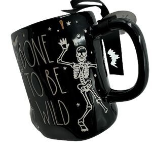 Rae Dunn Mug BONE TO BE WILD Black Halloween Skeleton Dancin Goth Witch New 2024
