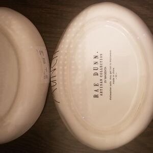Rae Dunn Munch Ceramic Candy dishes. NWT. Set of 2. Approximately 1 1/2 inches deep, 6 inches long, and 4 1/2 inches long. "Perfect imperfection" as expected with Rae Dunn pottery. Slight imperfections and markings are part of its uniqueness and design. Item pictured is exact item you will receive and care is taken when packaging. I am willing to create bundles if you would like multiple items.