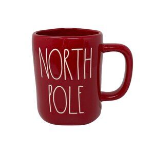 Celebrate the holiday season with this Rae Dunn NORTH POLE mug. The vibrant red ceramic design features Santa, making it a perfect festive gift for Christmas enthusiasts.