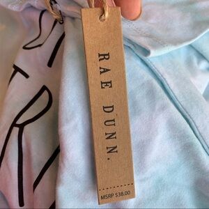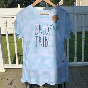Rae Dunn | Bride Tribe Blue White tie dye Classic Slub Tee & Scrunchie in soft white & blue with black Lettering NWT.