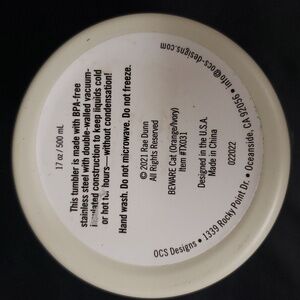 Rae Dunn NWT Insulated 17 oz Stainless Tumbler, BEWARE with Black Cat