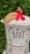 Charming white ceramic jar with 'BAKE' text and candy cane accents. Perfect for kitchen decor.