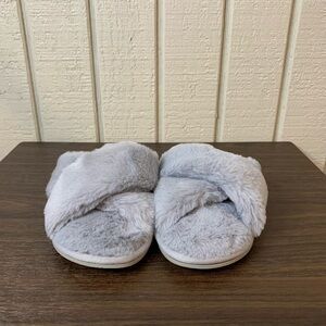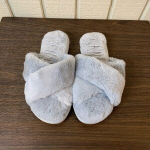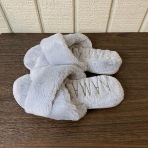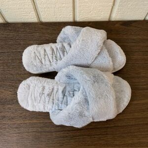 Rae Dunn Namaste Fluffy slide slippers, size small.