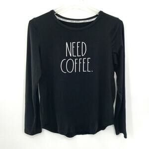Rae Dunn Need Coffee Long Sleeve T-Shirt Black M