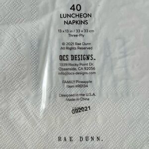 Rae Dunn New Napkins FAMILY 40 Pack Pineapple Aloha Luncheon Welcome Ivory Black