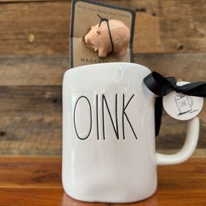 Rae Dunn OINK mug with ceramic pig mug charm 12 OZ NEW