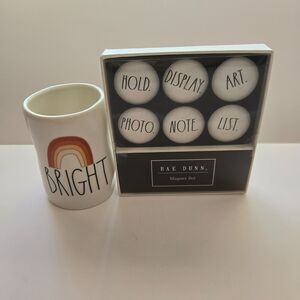Rae Dunn Office Bundle BRIGHT Ceramic Cup 6 Pc Glass Magnets Organization