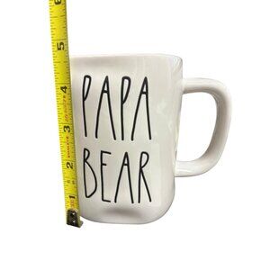 The Rae Dunn PAPA BEAR Ceramic Coffee Mug is a round, off-white mug featuring text as its design with a glossy finish. Made of ceramic, it has a capacity of 24 oz or 3 cups and is suitable for hot beverages or cold. This contemporary mug from the Art Pottery production style showcases a "Dad, Grandpa" theme, making it a perfect gift for various occasions like Father's Day, Christmas, or just to show your love and appreciation. It is dishwasher and microwave safe, featuring a handle for easy grip, and is an original piece made by Magenta by Rae Dunn.