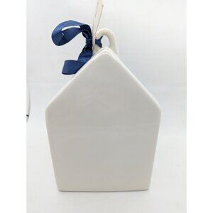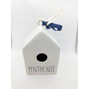 Rae Dunn PENTHOUSE Glossy White Square Ceramic Birdhouse New with tags. Some wear marks on bottom from storage and also some wear marks on blue ribbon.For more details please study all pictures.