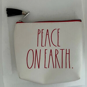 Adorable Rae Dunn small bag. On the front and back, Peace On Earth. Full zip top with black tassel pull. Fully lined. Rae Dunn logo tag inside. Brand new. Never used. NWT.