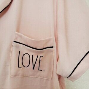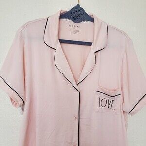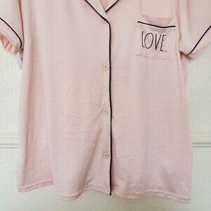 Rae Dunn Pink Love Short Sleeve Pajama Top Button Pocket Lounge Women's Size XL