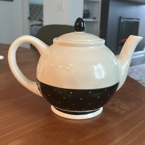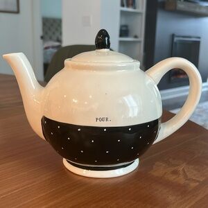 Rae Dunn "Pour" Tea Pot - cream with Black Polka Dots. RARE.