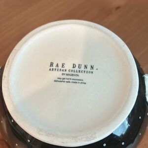 Rae Dunn Teapot & Lid Black Polka Dot Band Type Print 7 Cup "Pour."