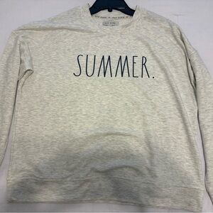 Rae Dunn Pullover Sweater Womens White Crewneck Sweatshirt SUMMER Lightweight