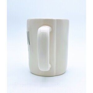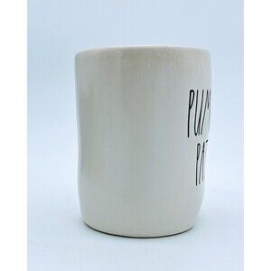 Celebrate the fall season with this Rae Dunn Pumpkin Patch white ceramic mug. Featuring Rae Dunns signature rustic, minimalist design with the phrase Pumpkin Patch in bold black lettering, this mug is perfect for adding a cozy autumn touch to your kitchen. It has a large handle for comfort and holds approximately 16 oz. This collectible Rae Dunn mug is in excellent pre-owned condition with no chips or cracks.