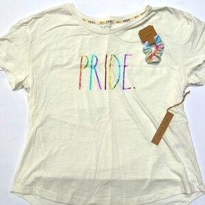 Here is a Rae Dunn Rainbow Pride Shirt with Tie Dye Scrunchie NWT Size L