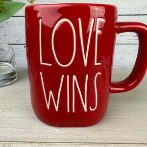 Rae Dunn Red Love Wins Valentine's Day Mug.