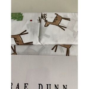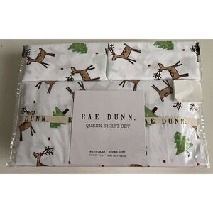 Rae Dunn Reindeer Christmas Tree Soft Queen Size Sheet Set Holiday 4 Piece NEW