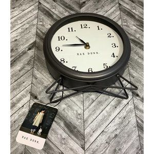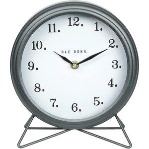 Rae Dunn Round Table Shelf Clock Gray Metal Design Styles Home Decor 8" x 8.75"