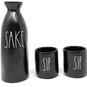 Rae Dunn SAKE Set 3 Pc Matte Black Farmhouse Pitcher Cups SIP Housewarming Gift