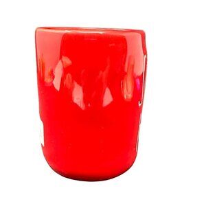 Rae Dunn pottery is handcrafted and known for imperfections, including marks, dents, dimples, bubbles, and glaze imperfections.