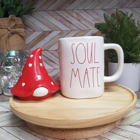 Rae Dunn SOUL MATE Mug with Gnome Topper Ceramic Valentine’s Day