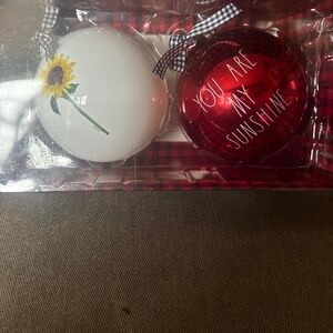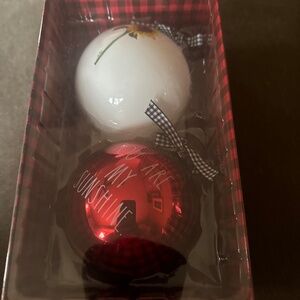 Rae Dunn Set of 2 Glass ball ornamnets You are my Sunshine Sunflower