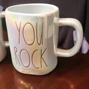 Rae Dunn Set of 2 Mugs "Text Me" & "You Rock" Iridescent Blue NEW!