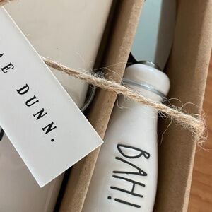 NWT, 5.75” square cream ceramic cheese board with matching knife.