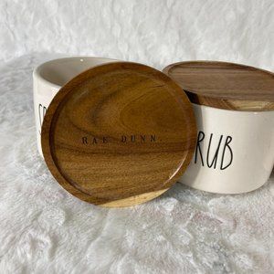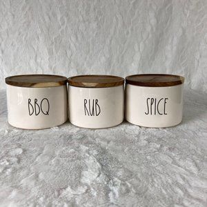 Rae Dunn trio - cellars with wood lids - Spice Rub BBQ - barbecue grilling theme decor