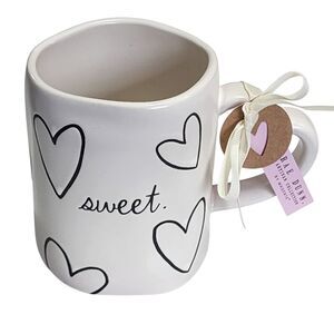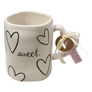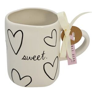 Rae Dunn Sweet Hearts Ivory Ceramic Coffee Mug 16oz Double Sided Design