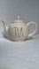 Teapot is creamy white. TEA is written in black large long letters ll.