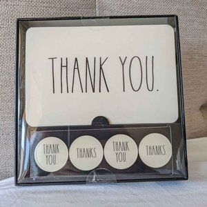 Classic Rae Dunn black and white design: THANK YOU notes. Contains 12 note cards, 13 envelops, 12 stickers (Thank you, Thanks)
