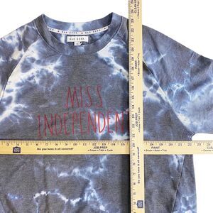 Rae Dunn Women's Tie Dye Sweatshirt Blue/White "Miss Independent" Dolman Sleeve
