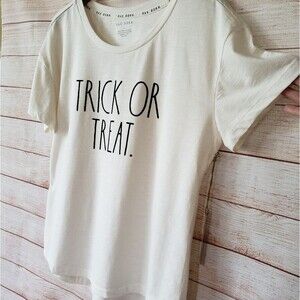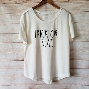 Rae Dunn "Trick Or Treat" Short Sleeve T-shirt Cream Black Cotton Size Large