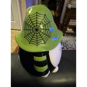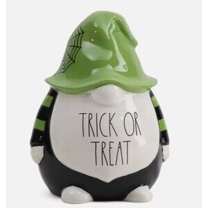 Rae Dunn "Trick or Treat" Ceramic Gnome Halloween Green Black 9" Fall Decor NEW