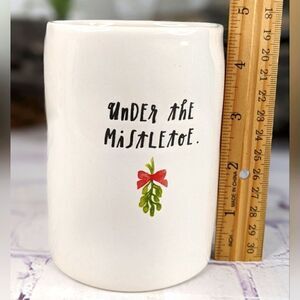 Rae Dunn UNDER THE MISTLETOE Ceramic Cup Candle Holder