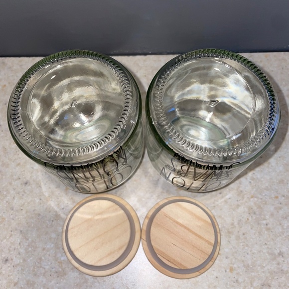 Rae Dunn Vanity Set Glass Wood Jar Containers Cotton Swabs Cotton Rounds