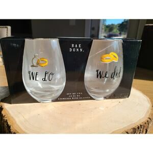 Rae Dunn Wedding glasses "We did" "We do" Stemless Wine Glass Gift 19oz