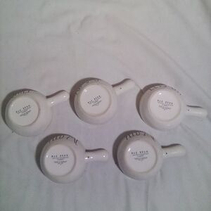 Rae Dunn White Ceramic Bowls With Handle Handwritten Design Set 5