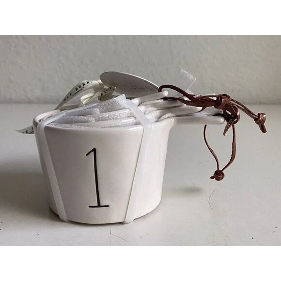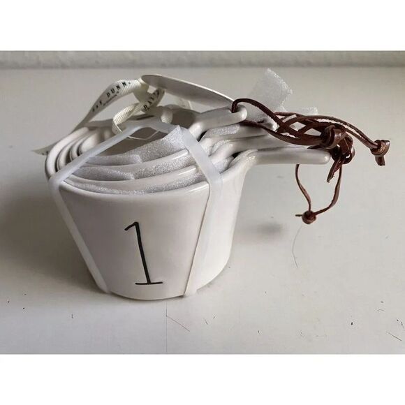 Rae Dunn White Ceramic Nesting Measuring Cups With Leather Strings NEW